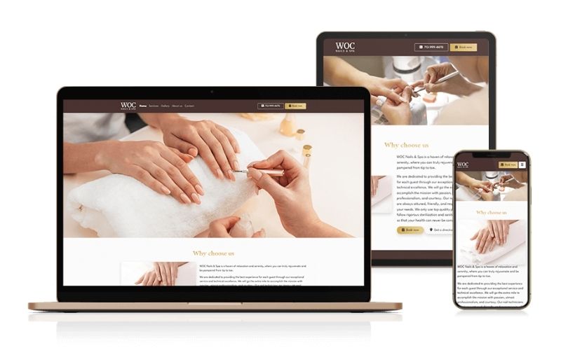 Professional website design for nail salons, featuring online booking, service menus, and stunning gallery displays. Elegant and mobile-friendly.